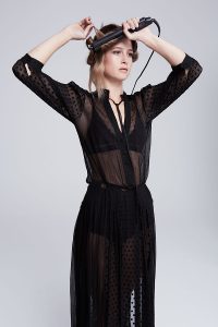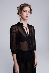 STYLE PREP: Evo Easy tiger (straightening balm) all over, Evo Salty dog spray on roots (for volume and texture).